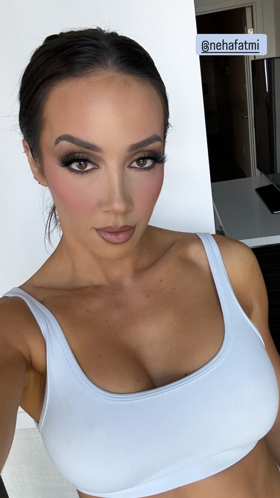 Chelsea Green shows off her makeup by Neha Fatmi ahead of WWE Friday Night SmackDown at Rogers Place in Edmonton, Alberta, Canada on September 6, 2024. Click here to watch a video of Chelsea showing off her makeup.(Photo from Green’s Instagram Stories)